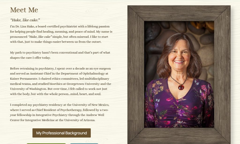 Dr. Hake also needed the website to properly support the third-party services that made her practice online. We create a new logo with her guidance, and helped set up email signatures, blog categories, AI generated rustic images to be seen as comforting metaphors by viewers.